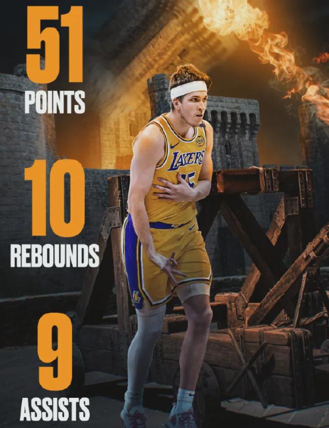 这场比赛,里夫斯打得非常给力,首发出战39分钟,22投12中狂砍51分11篮板9助攻的准三双数据,实在是有点太猛了。